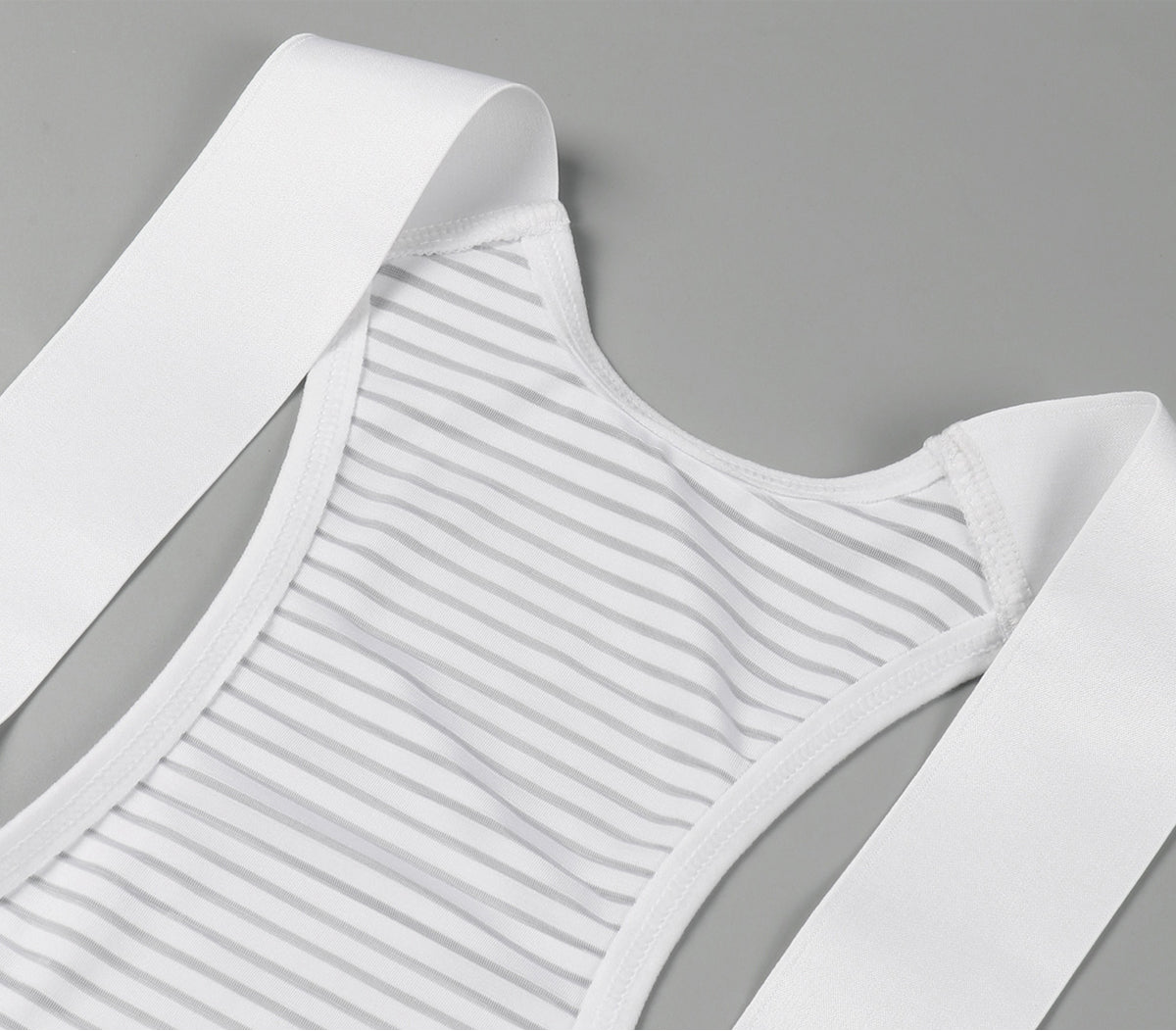 High airflow back mesh panel with bound edge in a stripe construction for enhancing breathability. Seamless elastic front bib brace straps for maximum comfort.